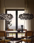 Clizia is a series of shapes fit together to create a perfect balance of reflections and transparencies. The lamp has taken note of natural forms, resembling a cloud that captures the first changing rays of morning sun, or a treetop filtering a play of light and shadows. All of the available versions marry aesthetics with functionality, featuring a magnetic system, connecting them to the ceiling (for the suspensions and applique) or the metal base (for the table and floor lamps). Clizia transforms a space into a landscape without overwhelming it.