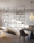 Lady D retains all the elegance and class of a crystal chandelier, of high lineage but with simple and sincere demeanours. A white fiberglass diffuser enhances the silhouette of the collection, from which crystal drops hang down in the pendant version. The floor version, without the crystal drops, can be moved thanks to a ring on the top of the diffuser.