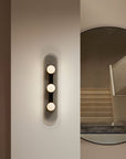 MODULO is a collection of chandelier, pendant and wall lights distinguished by its modular form, arranged in linear configurations creating versatile lighting sculptures. Combining functionality with artisanal skill, the design focuses on geometric forms, connected in compositions of modules. The glowing domes are spaced in a linear pattern, allowing the light to reflect along the transparent, elongated glass disc and metal frame.