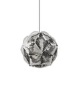 Inspired by inflatable geometry, Puff is an intricate polyhedral object made of at diamond-shaped metal panels, expanded and ballooned as though they have been inflated thanks to their cunning incised pattern. The etched and perforated panels of Puff create small but highly reflective facets facets that disperse myriad internal reflections, making the inside akin to a shimmering inverted disco ball.