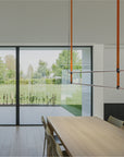 T.O celebrates the importance of light as a pillar in our daily life. T.O features an elegant wand of light suspended by two decorative woven nylon belts finished with over-molded features that allow for full 360 degree rotation to direct light in all directions. T.O Pendant can transform from a direct task-oriented light to indirect ambience with minimal effort. It's suspension system allows for ultimate freedom and creativity to suspend in a wide varitey of configurations from linear series, to multi-axis and multi-level groupings to create stunning displays for residential and workplace environments alike. T.O Pendant is offered in polished chrome, matte black and matte grey finishes paired with suspension belts in burnt orange, graphite, and light grey and can be mixed and matched to any desire.